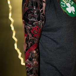 My artistic interests cover a wide range of mediums and styles, which have evolved over different periods of my life. I like to draw people's attention and emphasize their perspective by introducing vibrant and colorful objects to places where they don't belong, with the intention of catching the eye. I have worked with a variety of materials and scales, but my favorite canvases are digital media and skin (tattoos). During my first BA Major, I gained a lot of knowledge about realism pencil and charcoal drawing. Although I don't consider myself a strong realism drawer, the European continent, where the renaissance and classical drawing originated, has left a lasting impression on me. Currently, I focus mainly on small-scale graphics, which make up 80% of my work. I intend to continue focusing on this area and building upon it. Over the years, I've experimented with many different mediums, ranging from 3D work for my degree projects to sculptures made from metal and foam for the Rose Parade. I've also worked on digital designs for posters, cards, and commercial media, as well as paintings made with acrylic and spray paint. Recently, I've been exploring skin and digital media. I am inclined towards the gore, and the grotesque I always found it fascinating as it makes people stare. Devil is in the detail so I do tend to pay as much attention as I mentally can to my fine work. My compositions usually relate to whatever is popular, I often observe the work of other artists in the tattoo world to whom I may relate, in order to develop ideas for my compositions and generate a final product. Specifically in my field of work which is tattoos, I get asked to create original art every week and I have found that to be very challenging but rewarding. That volume tremendously helps the artist to undertake more projects with believe that one can execute them and present them. My current favorite medium is the human skin. My main focus is on a realistic grey work with splashes of red around it (the style is more famously known as “Trash Polka”), It’s a clash of realities. Another style I do enjoy is the “Pencil Sketch” (a way of tattooing where the lines are rough and look like a sketch). When I’m not making tattoos, I do enjoy designing them which sometimes turns into graphic art itself, I use mainly Procreate or Sketchbook for that purpose. I think as an artist my work and my client’s responses have determined me to be a very detail-oriented tattoo artist. This is the field that has brought me the most rewarding development into fine art. I do feel the need to keep pushing the boundaries in order to achieve another step into my detail. Regardless of the medium that I use I always like to attract the interest with flashier and bolder imagery. I will continue to experiment into that topic in order to achieve as much of that effect into my spectators.